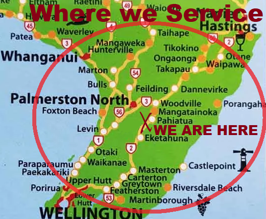 We are located 4km south of Pahiatua, we have cattle yards and sheep pens for on site slaughter, we also cover the greater Tararua, Manawatu, Wairarapa, Dannevirke and Horowhenua Districts, Just ask us – we will try and accommodate you!